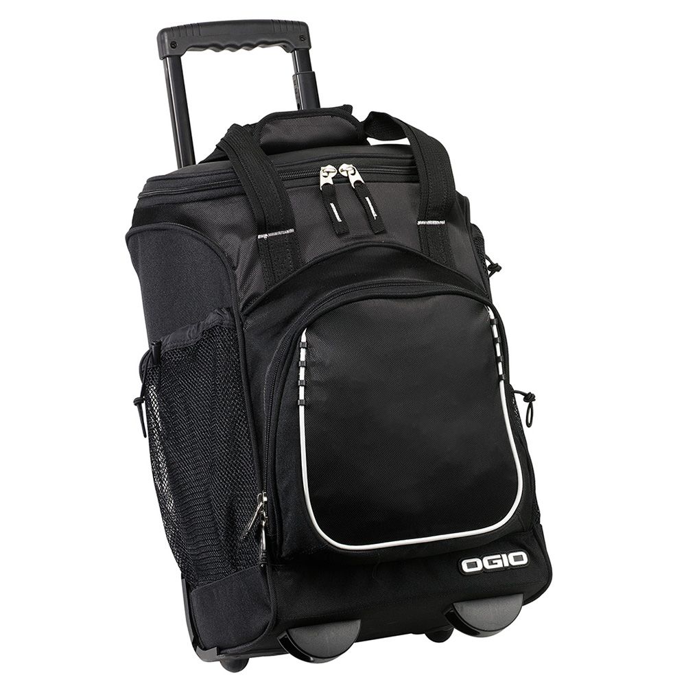 Party-sized cooler rolls with ease on sturdy wheels with an adjustable-height handle.