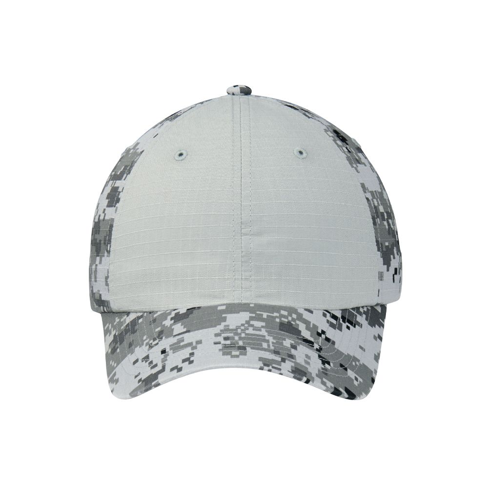 This cap makes an impact with solid dyed-to-match front panels and a digital camo pattern on the mid and back panels. Fabric: 100% cotton ripstop Structure: Unstructured Profile: Low Closure: Hook and loop