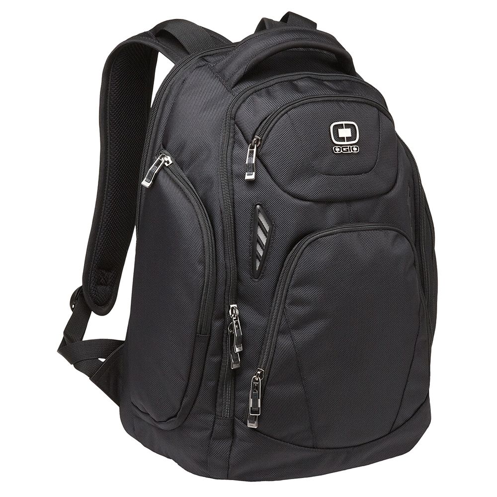 • An ultra-protective pack that keeps your pricey gadgets in pristine condition. • 1,680D poly/900D poly • Front compartment with file divider • Back padded laptop pocket • Padded tablet/e-reader sleeve • Organization pocket • Fleece-lined pocket for digital media/audio or valuables • Two side zippered pockets • Side mesh beverage pocket • Comfortable straps with elastic shock absorbers, sunglass loop and elastic pocket • Ultra-padded air mesh back panel with ventilation channels • Laptop sleeve: 15.5"h x 11.5"w x 1.5"d; fits most 17" laptops • Dimensions: 19"h x 13.5"w x 8.5"d • Capacity: 1,584 cu. in./25.9 L • Weight: 2.6 lbs./1.18 kg • Note: Bags not intended for use by children 12 and under. Includes a California Prop 65 and social responsibility hangtag.